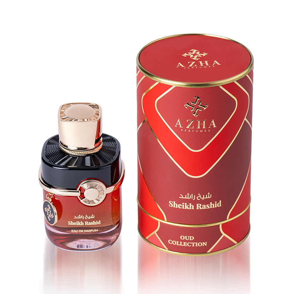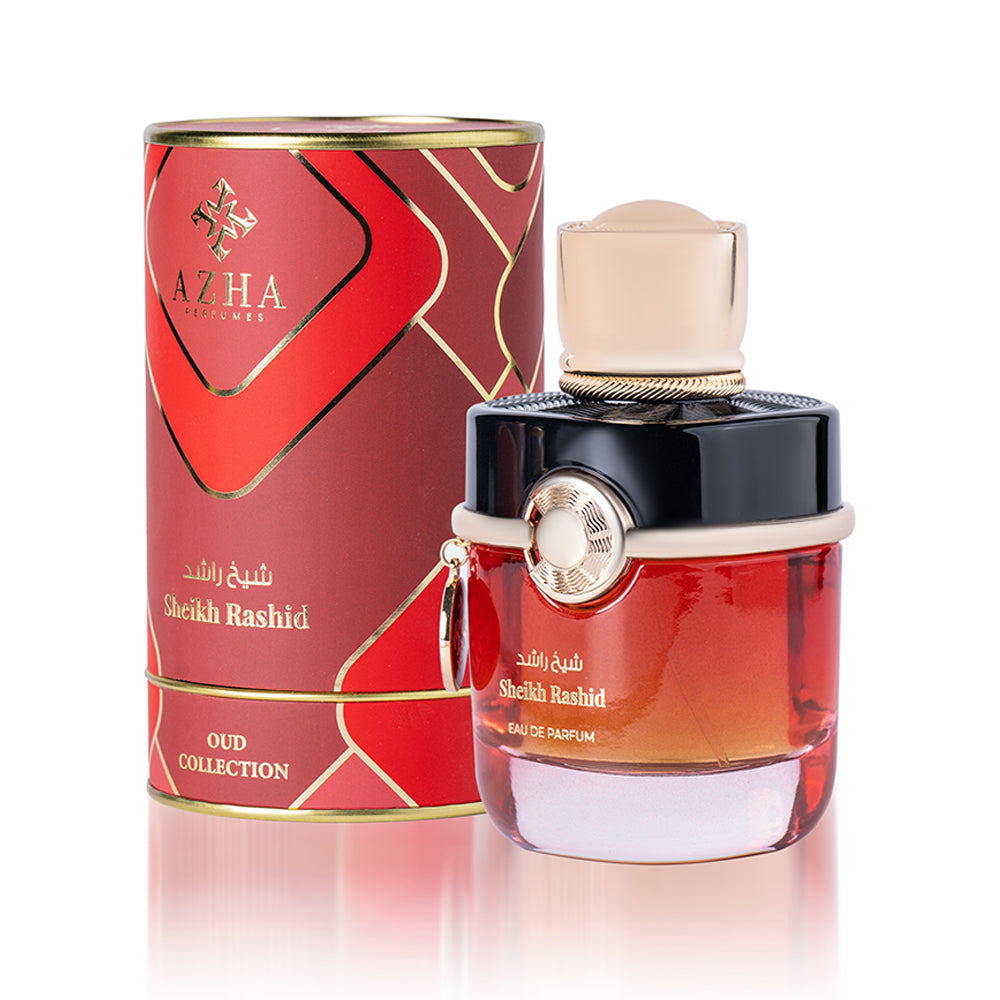 Introducing 'Sheikh Rashid' Oud, a fragrance of regal opulence. It begins with citrus and elemi top notes, offering a bright and invigorating introduction. At its heart lies the rich blend of oud and rose, exuding timeless sophistication. As it settles, the base notes of ambergris, cashmere, and cypriol create a warm and majestic aura. 'Sheikh Rashid' is a tribute to refined luxury and an ode to the allure of oud.