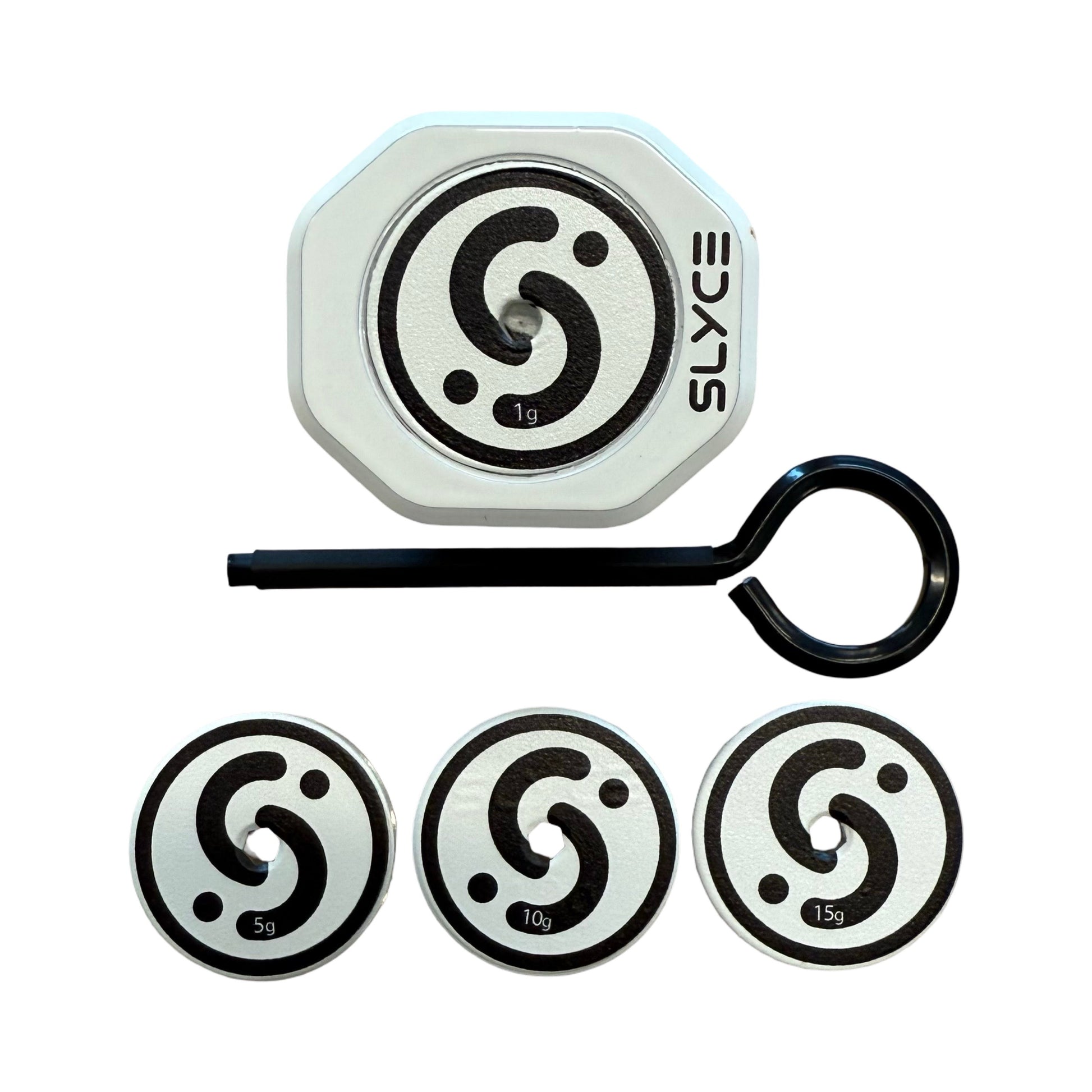 Introducing the SLYCE Externally Adjustable Weighted Slim Edition SpeedCap for Pickleball Paddles - Elevate your game with this meticulously crafted replacement grip cap designed to take your performance to new heights. Engineered with precision and crafted from high-grade 6061 Aircraft Aluminum, this cap is not just an accessory; it's a game-changer.