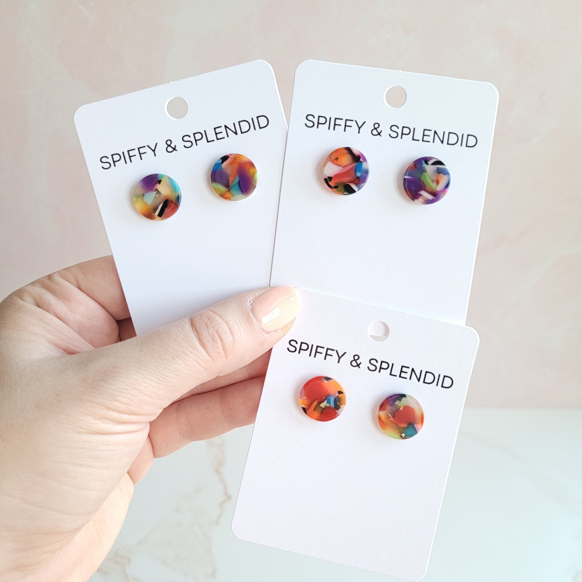 Our classic Sophie Stud Earrings are circle-shaped studs that come in a variety of colors. These earrings are perfect for everyday wear, and the simple design makes them versatile enough to pair with any outfit.  These studs are made with high-quality materials, ensuring they will be a staple in your jewelry collection for years to come.