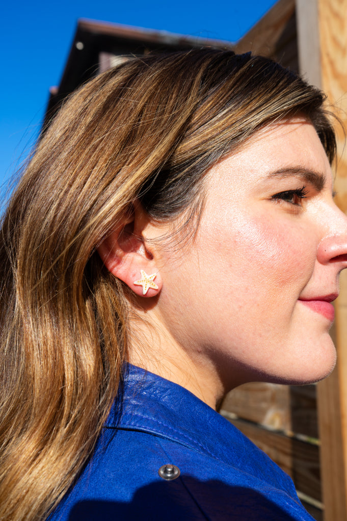 Get a touch of the beach with our Starfish Studs! These playful earrings feature a charming starfish design with gold accent details that will elevate any outfit. Perfect for a fun look, or to add a touch of whimsy to your style. (No need to be a mermaid to rock these studs!)
