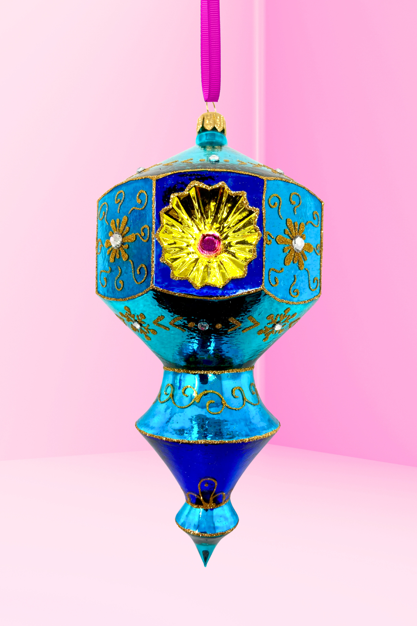 Dramatic. Dazzling. Born to be adored. With high-voltage pinks and glittering emerald accents, this ornament is a scene-stealer—just like her namesake. Each facet reflects a love of luxe, a whisper of mischief, and a full-hearted embrace of being too much. Why blend in when you can glow?