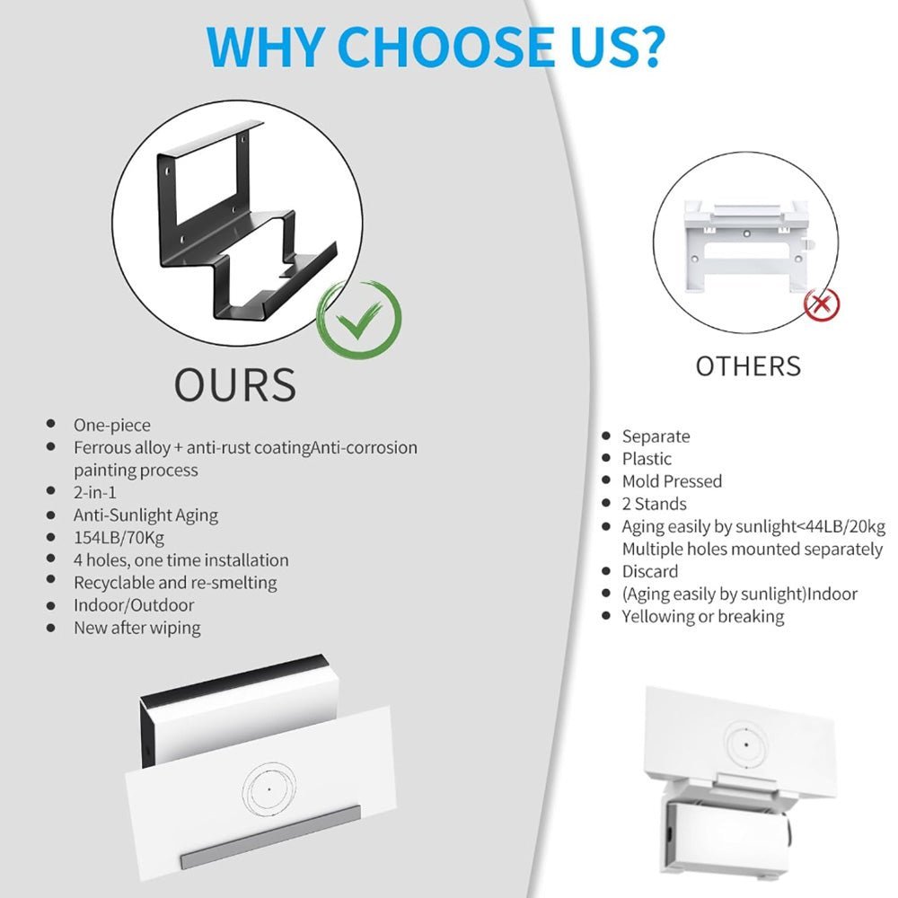 Durable Metal Construction: Made from high-quality iron alloy, this wall mount is built to last. It is rust-resistant, impact-resistant, and scratch-proof, with a long service life and excellent resistance to oxidation and sunlight aging.