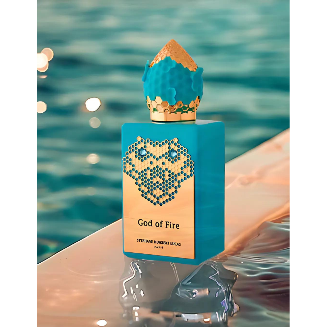 Fragrance story: God of Fire is inspired from the legend of Xiuhtecuhtli, God of fire, day and light in the Aztec mythology. Creator of all life, he is the mother and father of all Gods. He is the personification of light in the darkness, warmth in coldness and life in death. As a patron of kings and warriors, he is shown carrying a turquoise serpent around him and wearing a crown and ornaments made of a Turquoise blue stones.