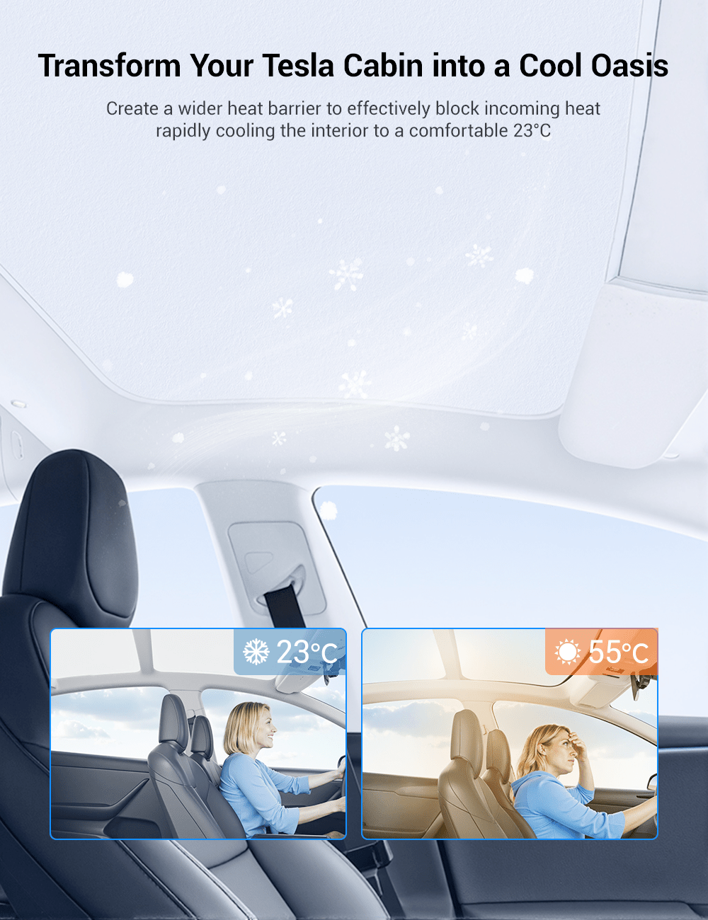 Is your Tesla Model 3 feeling like a sauna in the summer heat? ๐ฅ The sun can quickly turn your car into an oven, accelerating interior aging and compromising comfort. Our Graphene Roof Shade for Model 3 is designed to block harsh sun and UV rays, keeping your interior cool and protected for a more comfortable ride!โ๏ธ
