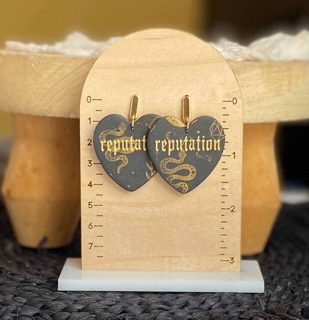 Each piece is one of a kind handmade by me. I design each piece from start to finish in my studio in TX. I cut the piece from our very own custom blended colors and bake. All of our jewelry is hand sanded with a series of fine grit sandpaper and buffed to a smooth finish. A lot of love and care goes into each and every pair!