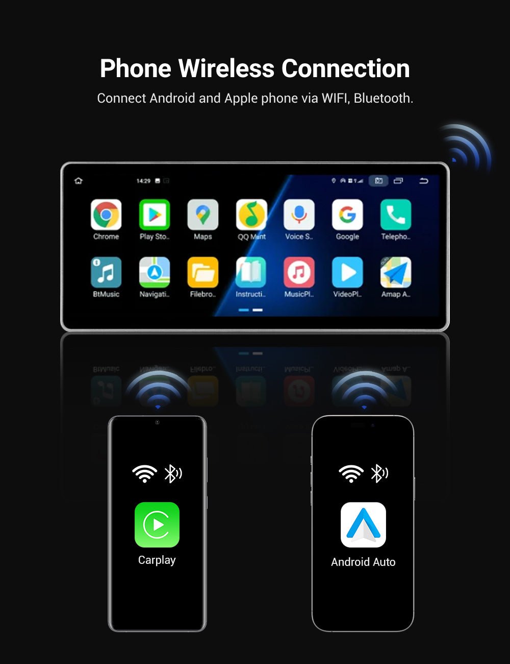 Supports Apple wireless CarPlay and wired/wireless Android Auto