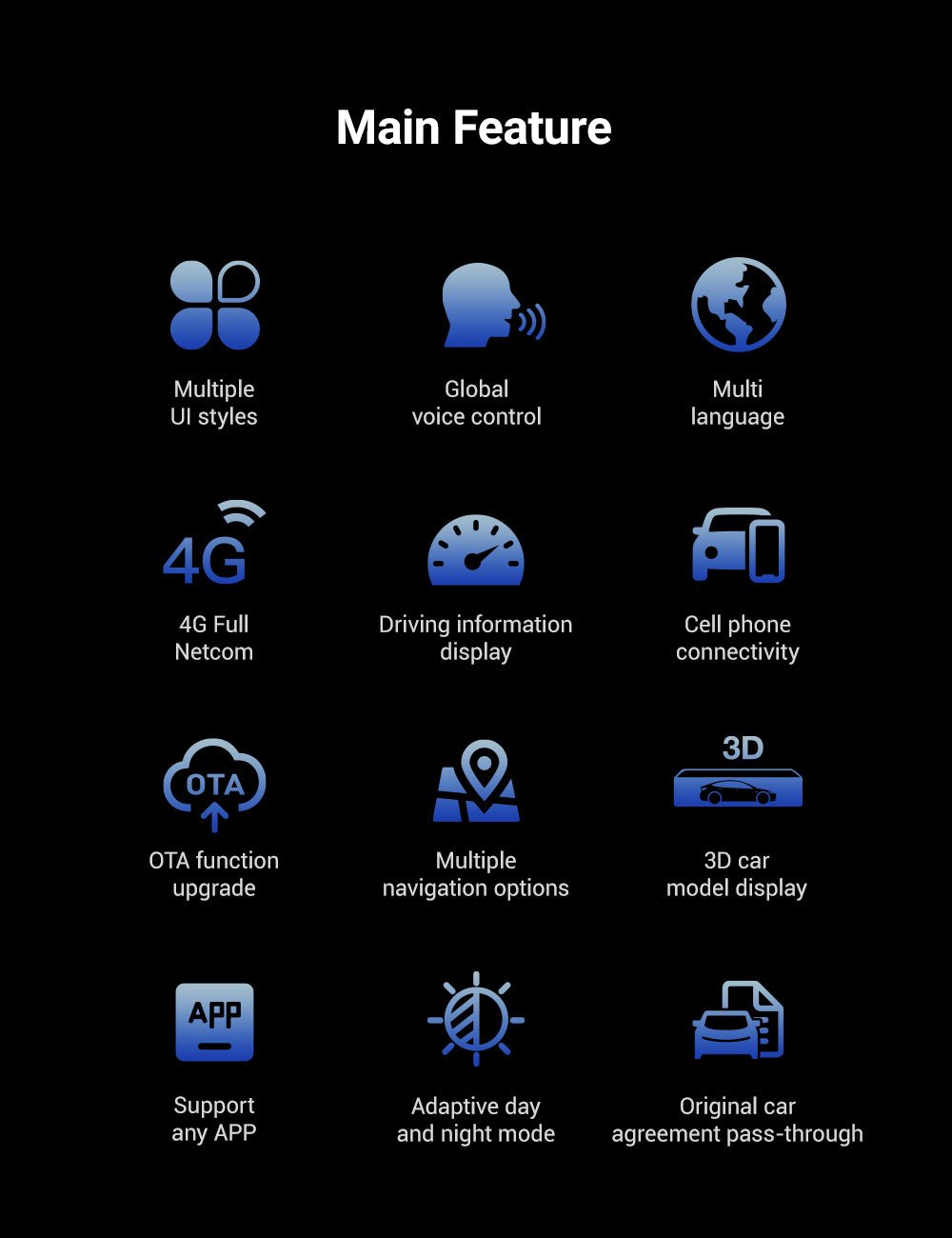 OTA Upgrade: Built-in 4G, Tesery New 4G Tesla instrument cluster equipped with Android 12.0 system, Support OTA online upgrade in the system. You no longer need to download the upgrade file and unzip files.