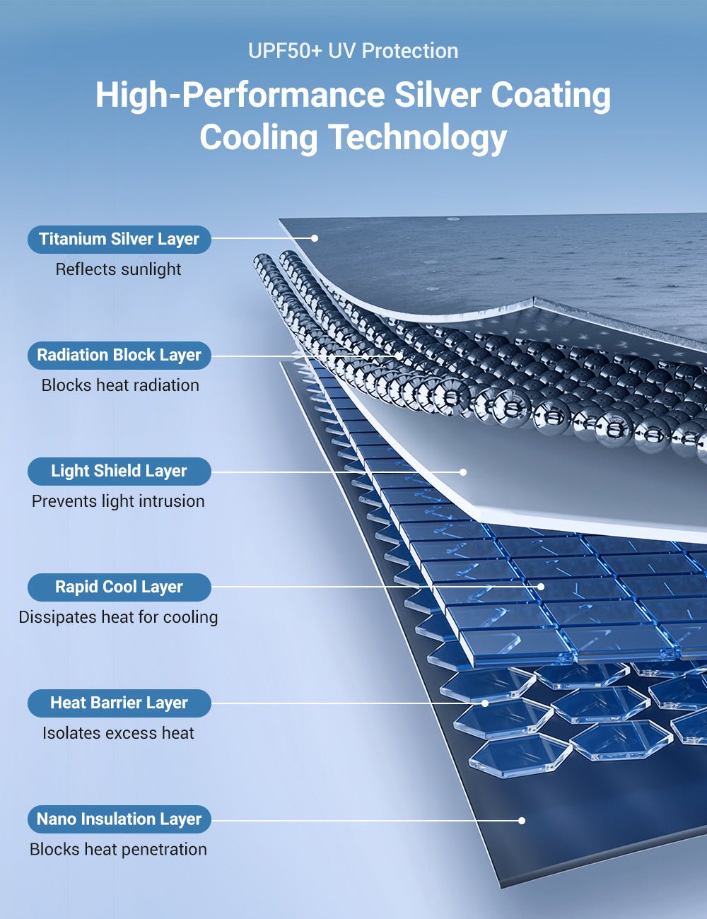 | High-Density Nano Ice Crystal Fabric | Offers exceptional sun protection and heat insulation while maintaining optimal light transmission. |