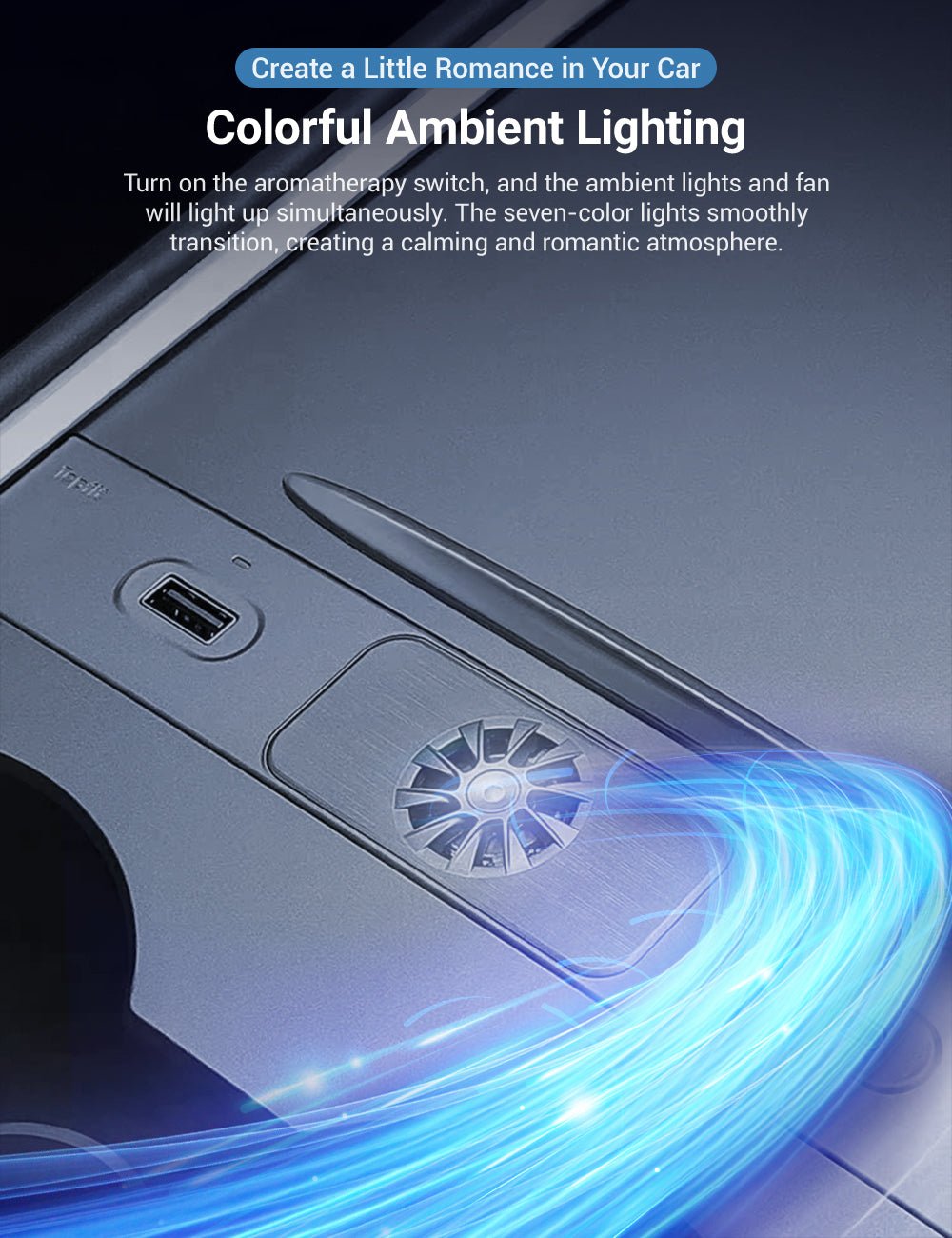 Elevate your driving experience with the built-in mini fan that disperses refreshing aromas throughout your Tesla. This diffuser expansion dock creates a pleasant atmosphere, making every commute a breath of fresh air.