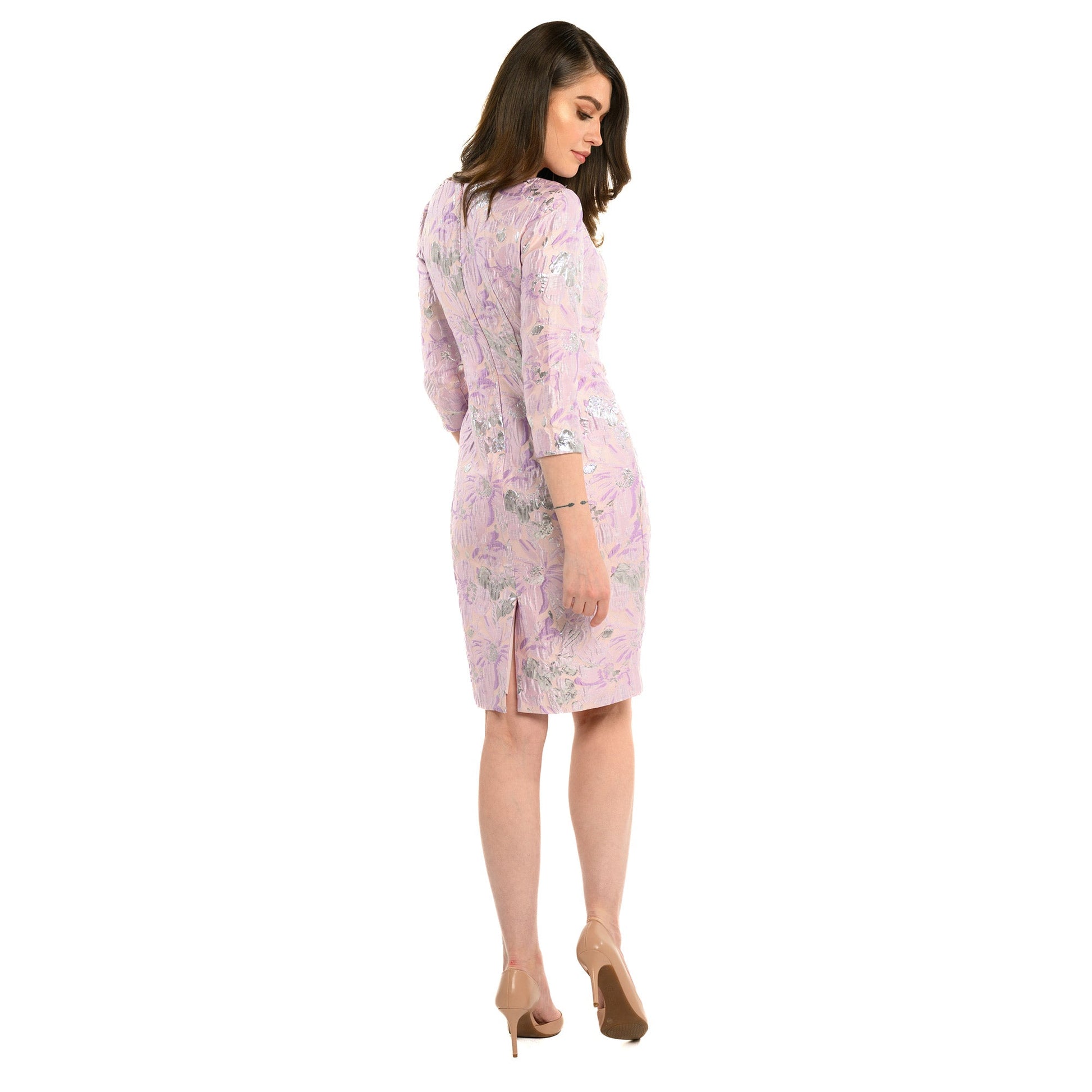 Choose The Isabella. This elegant, understated garment comes in spectacular shades of Pink with Gold, Lavender and Silver, or Green and Blue. With so many tones available, you can craft it into any look. And when you don the Novelty Jacquard Fabric, you'll sense the serenity and comfort. Its intricate pattern with 3/4 sleeves and snug fit gives it the perfect royal feel. Step into this dress and unleash your inner royal.