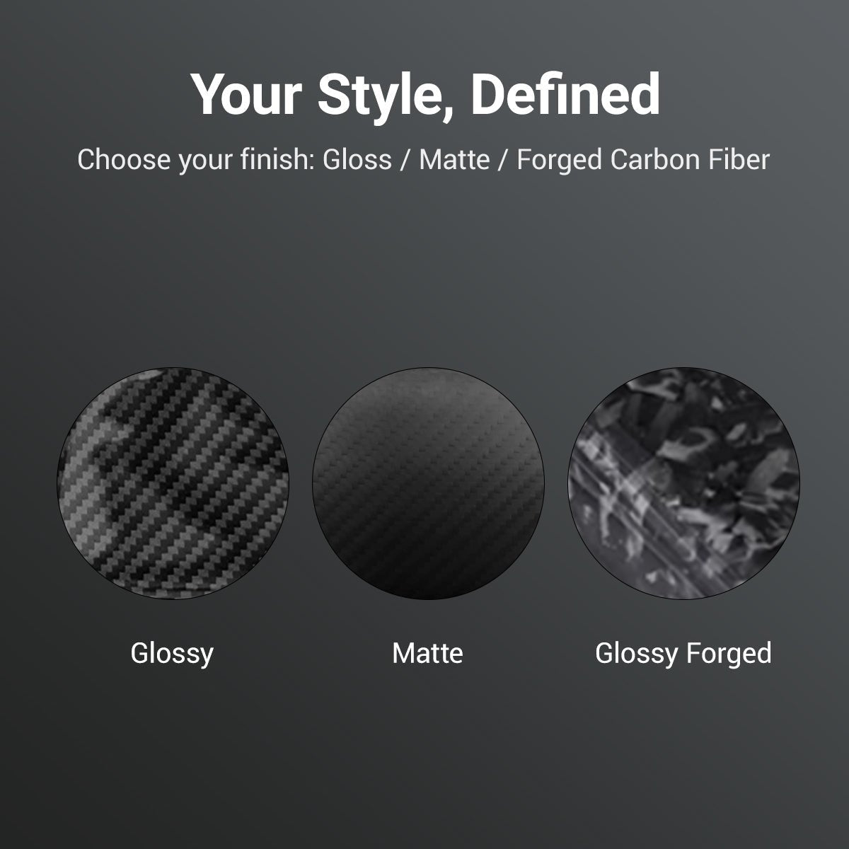 Match your Model Y's existing carbon fiber accents or paint scheme flawlessly. We offer two distinct finish options: a stunning Glossy "wet look" for a deep, reflective sheen that pops, or a sophisticated Matte "dry carbon" finish for a more understated, race-inspired aesthetic. Choose the one that best complements your style.