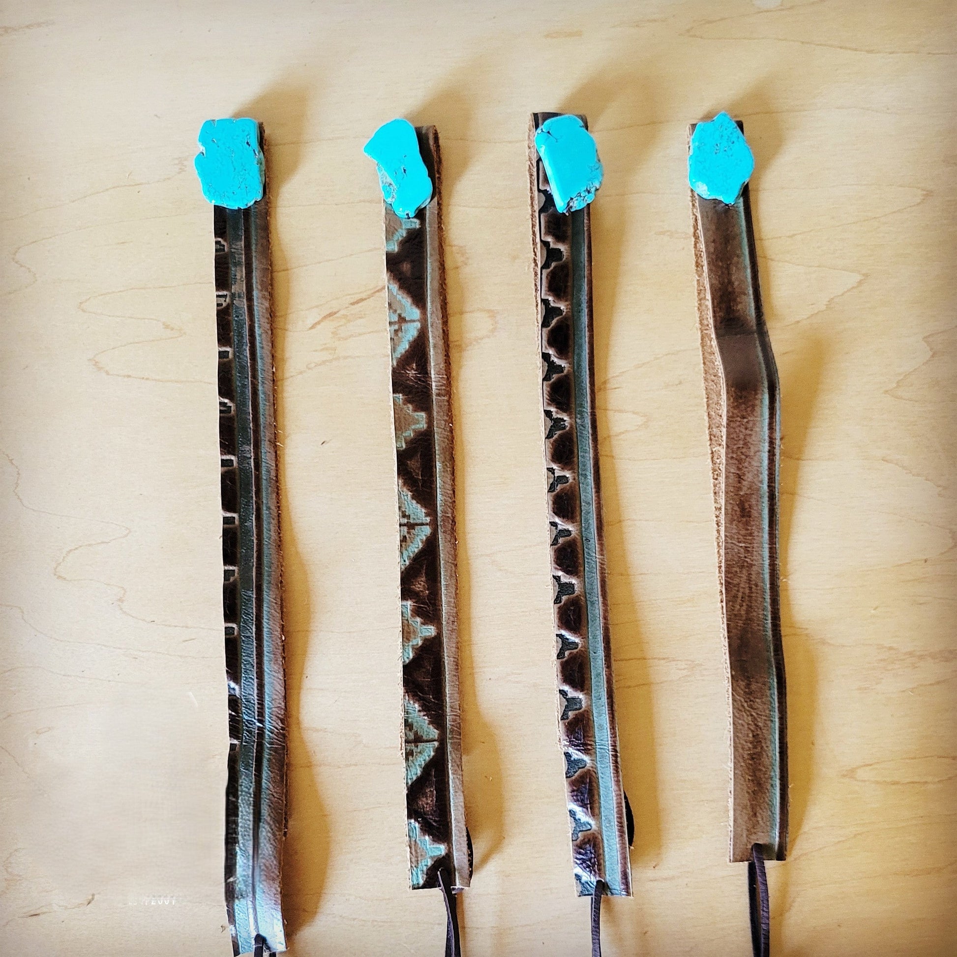 Genuine Howlite Turquoise stone is hand-sewn to leather