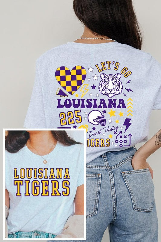 LSU TIGERS,FOOTBALL UNISEX SHORT SLEEVE,GRAPHIC TEE,GRAPHIC TSHIRTS,TSHIRTS,TEES100%COTTON,HEATHER(52%COTTON,48%POLY),ATH.HEATHER,BLACK HEATHER(90%COTTON,10%POLY)NICARAGUA