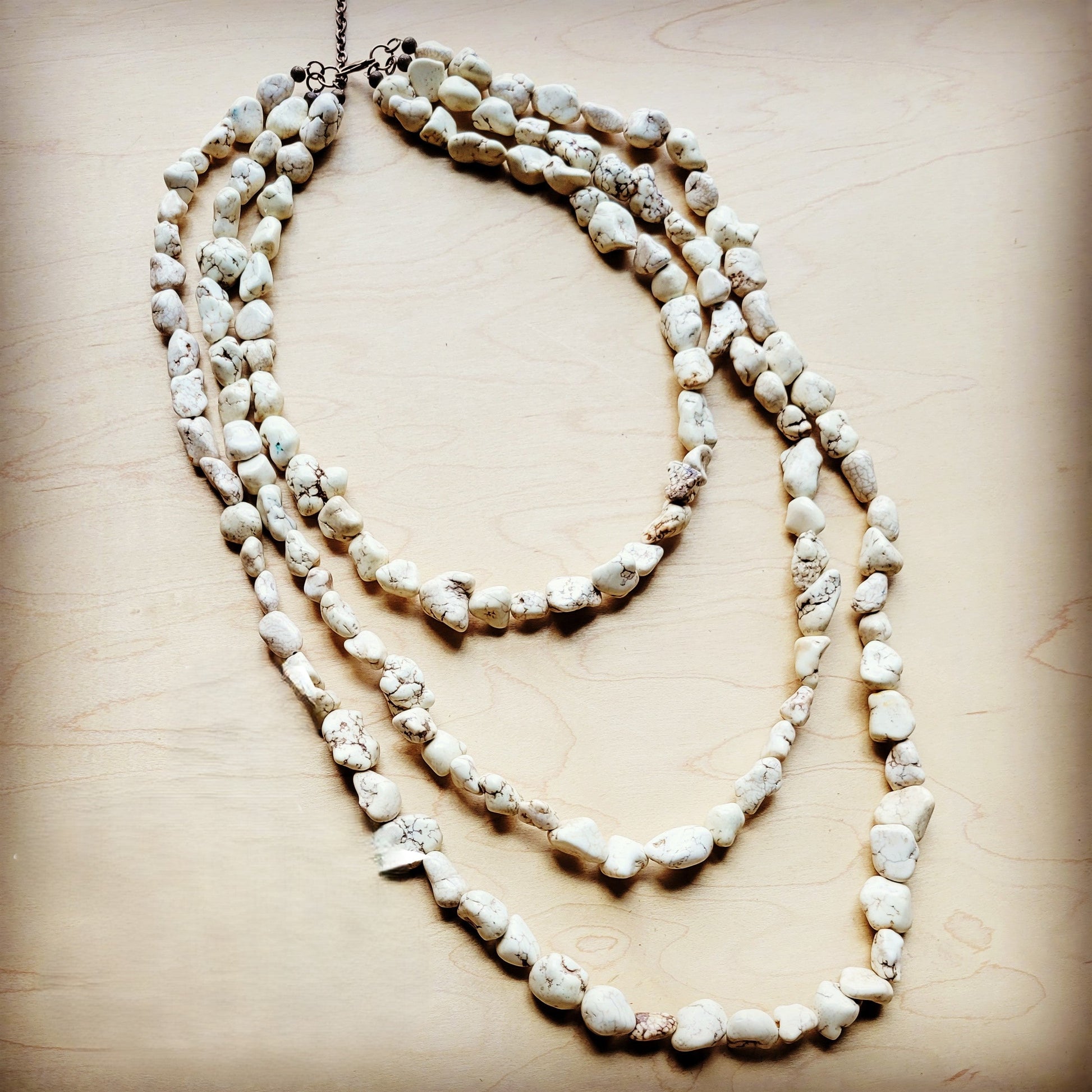The chunky stones in this necklace make this a great statement piece. Featuring dyed white turquoise stones, this necklace is fantastic for stacking or wearing with some of your other favorite pieces from this collection. Each of the stones used on this necklace is hand beaded and selected for quality. Given the nature of these stones, no two necklaces look exactly the same. When you’re looking for a handmade piece that you can easily incorporate to a variety of outfits, you can’t go wrong with the turquoise collection by The Jewelry Junkie.