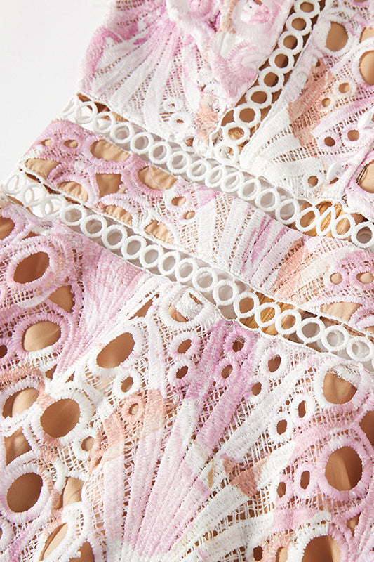 Embroidered ruffle maxi dress with a hidden back-zip closure, lined with a round neckline, sleeveless.S: Bust 36 inches, Waist 28 inches, Length 51.6 inches M: Bust 37.8 inches, Waist 30 inches, Length 52 inches L: Bust 39.3 inches, Waist 31.5 inches, Length 52.3 inches XL: Bust 41 inches, Waist 33 inches, Length 53 inches 2XL: Bust 42.5 inches, Waist 34.6 inches, Length 53.5 inches Model 5'7'' Bust 31 Waist 23 Hips 34 wearing an M